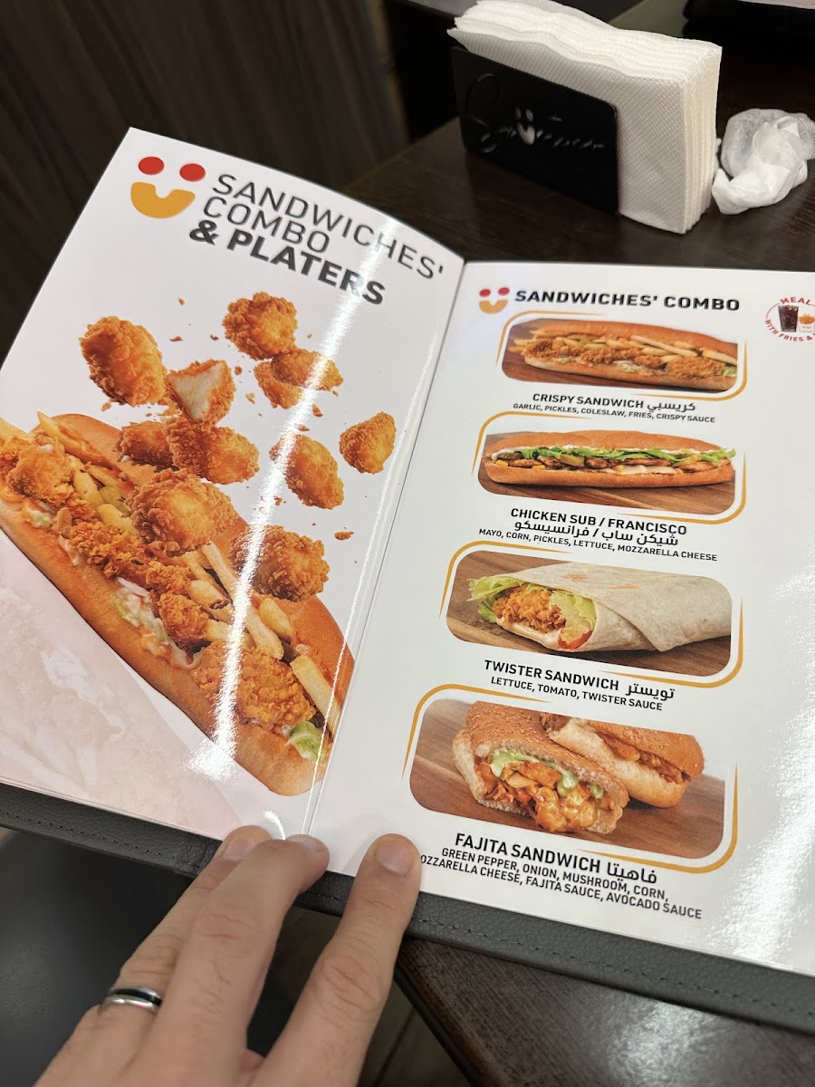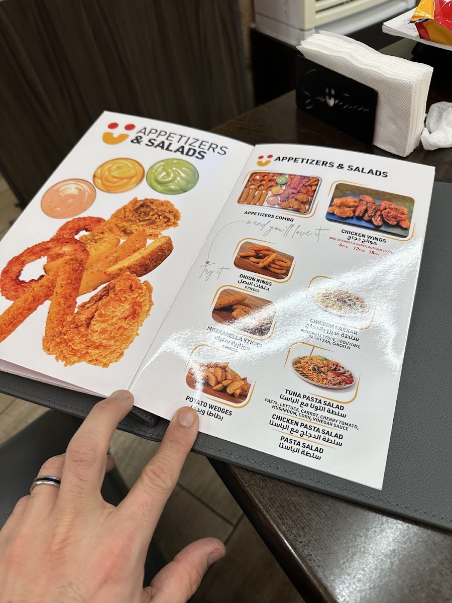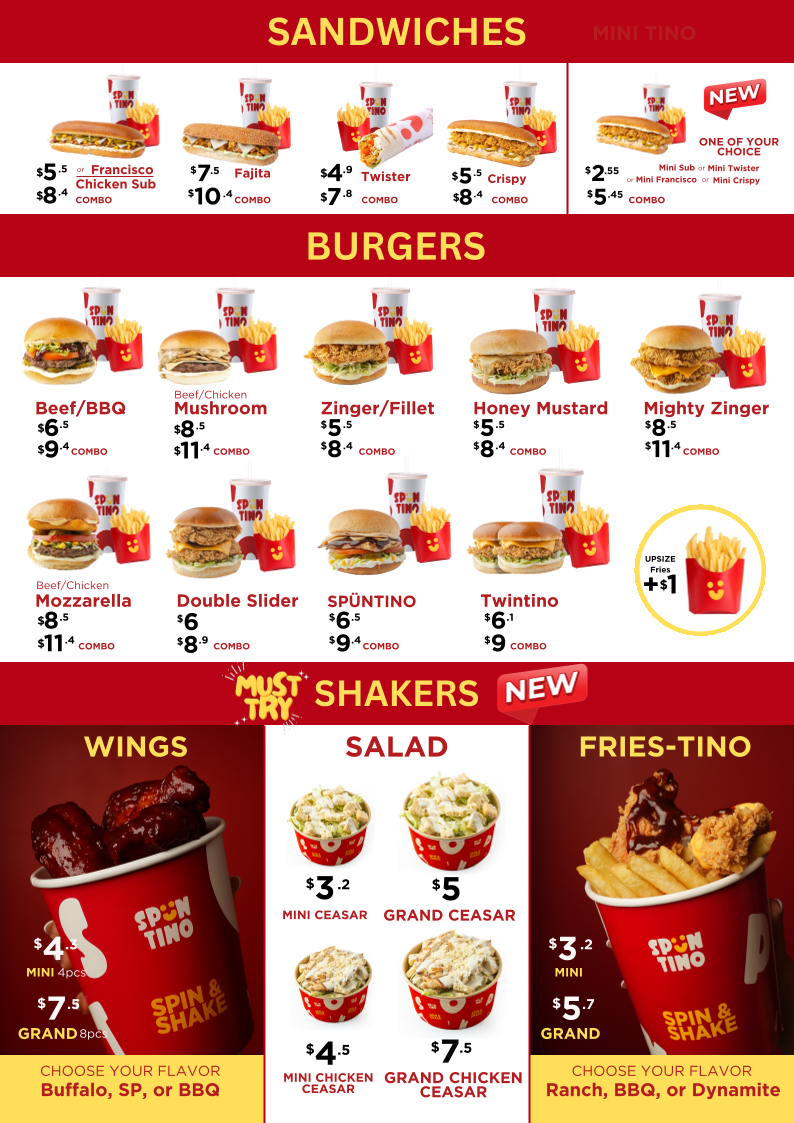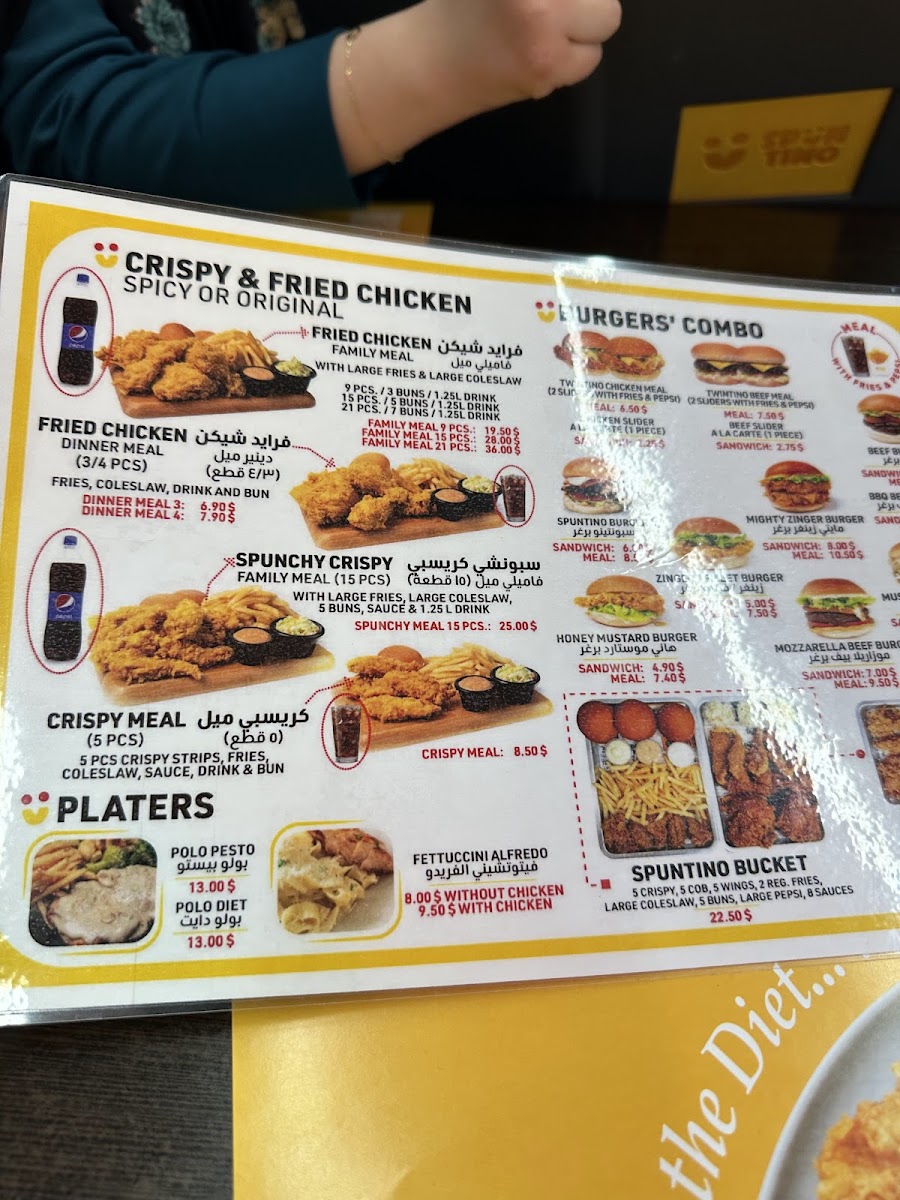 The menu at Spüntino Di Shadi in Sidon, Lebanon, offers a variety of satisfying options that appeal to diverse tastes. The standout dishes are hearty, flavorful, and perfect for sharing. Crispy Chicken Strips and Fries is a crispy, golden-fried option that pairs perfectly with the restaurant’s signature dipping sauces. For families, the Family Offer provides a great way to enjoy a mix of dishes, ensuring everyone has something to enjoy. If you're in the mood for a filling burger, the Mozzarella Beef Burger offers a delightful combination of juicy beef and creamy mozzarella, served with a side of crispy fries. For those craving comfort food, Cheesy Fries are the ultimate indulgence, topped generously with melted cheese. The Caesar Salad and Futucini provide a refreshing, balanced meal with fresh greens and pasta, ideal for lighter appetites. The Chicken Sub Sandwich Combo is another satisfying choice, featuring tender chicken in a soft sub roll with all the delicious extras, while the Chicken Crispy delivers a crunchy, savory experience that never disappoints. These menu items, with their rich flavors and satisfying portions, make Spüntino Di Shadi a reliable destination for a delicious and fulfilling meal.